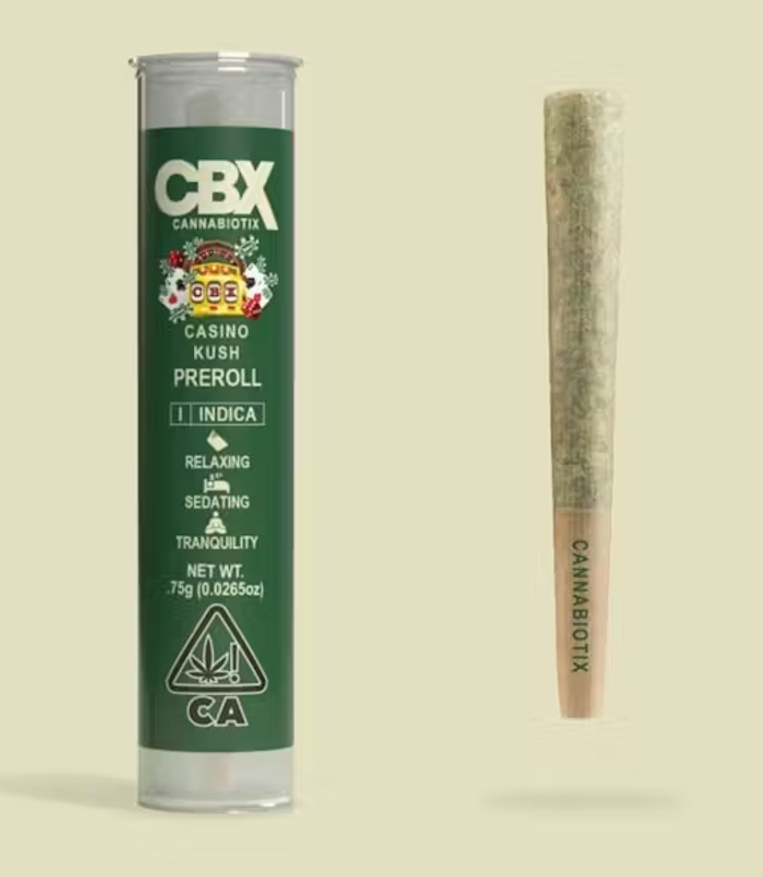 Cannabiotix exclusive Casino Kush crosses the renowned White Walker OG with Blue Flame to create an indica-leaning hybrid with a radically potent testing average of 29% THC. The spicy, fuely, and robust earthy flavor of this strain relaxes like no other, easing you into a languid state of happiness and creativity. The 2018 High Times World Cup Best Indica Flower 2nd place winner, Casino Kush is great for battling insomnia and easing chronic pain. 100% Premium Flower. No Trim. All Natural Paper. .75g Flavors Diesel Earthy Pine Effects & flavors are reported by users on our site. This is for informational purposes only and not intended as medical advice. Please consult your physician before changing any medical treatment.
