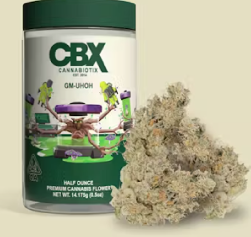 A new age staple, GMO a.k.a. GM-UHOH a.k.a. Garlic Cookies, is a stupid funky cross between Chemdawg and Forum Cookies, known for its incredibly unique terpene profile and soothing high. A mix of garlic, onion, mushroom, and gas, GMO is an indica dominant hybrid that his just as strong as it smells. These light green, spade-shaped buds are draped in crystals and feature orange hairs throughout with the occasional streaking violet hue. It has been said that this potent smoke (testing between 32%-36% THC) can lead to a state of sedation and tranquility; GMO is known to help with chronic pain, anxiety and nausea.