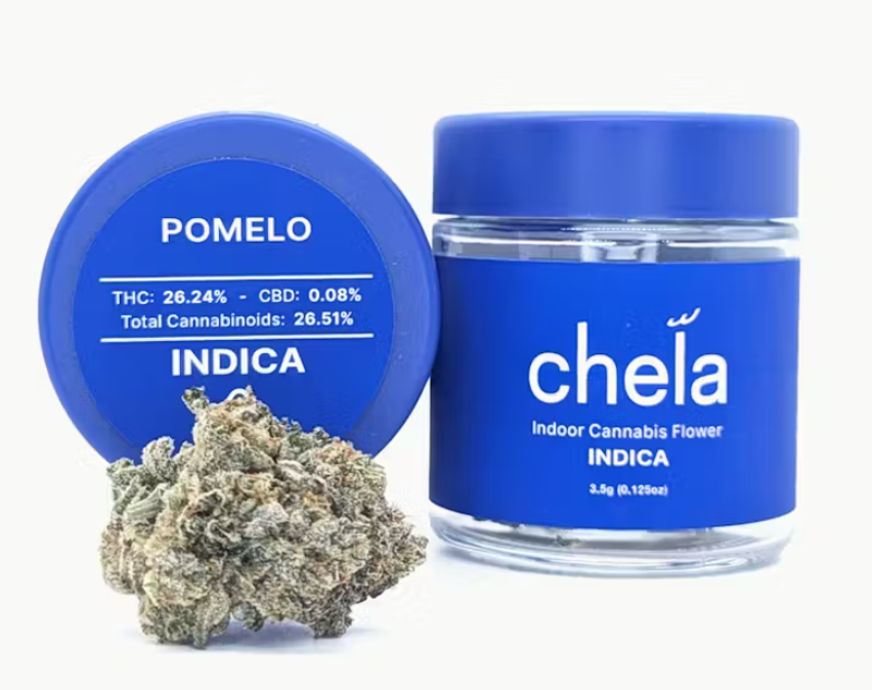 Pomelo Indica-Dominant Hybrid (80% Indica / 20% Sativa) | THC: 23–29% | CBD: <1% A vibrant cross of Sour OG and Romulan Grapefruit, Pomelo delivers a euphoric, energizing high that sparks creativity and sociability, followed by a soothing body relaxation. Flavor/Aroma: Bursting with sweet citrus (apricot, pomegranate) and earthy undertones, underscored by floral and musky notes. Effects: Uplifts mood, fights stress, and enhances focus. Eases chronic pain, anxiety, and PTSD while keeping you functional. Appearance: Mint-green buds with some purple hues fiery orange pistils, coated in frosty trichomes. "Like sunshine in a joint—bright, fruity, and blissfully balanced." Best for: Socializing, creative projects, or managing fatigue and depression