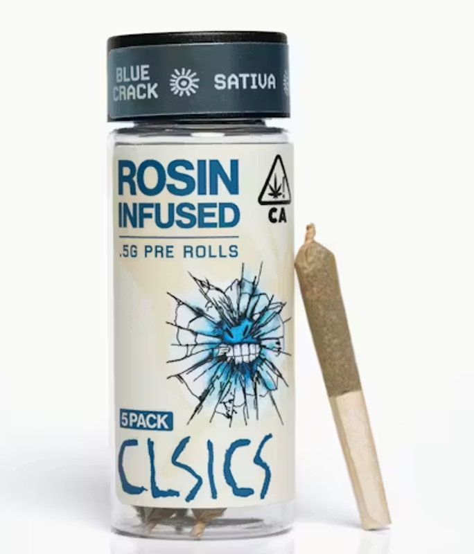 Get ready to experience the sky-high magic of Blue Crack, a sativa sensation that will deliver a crisp, invigorating high. This electrifying strain takes after its iconic parents, Blue Dream and Green Crack, dialing up the good vibes to a euphoric wonderland where everything's groovy and the possibilities are endless. If you're an artist, writer, or just someone who loves to get those creative juices flowin', Blue Crack is like your muse in plant form. All CLSICS rosin infused pre rolls are handcrafted from start to finish. These products begin with carefully curated strain specific cannabis which is then infused with our in house processed fresh frozen ice water hash rosin extracted from meticulously procured strains selected for their unique terpene profiles to deliver a delicious, mouthwatering connoisseur level solventless experience. Flavors Berry Nutty Skunk Effects & flavors are reported by users on our site. This is for informational purposes only and not intended as medical advice. Please consult your physician before changing any medical treatment.