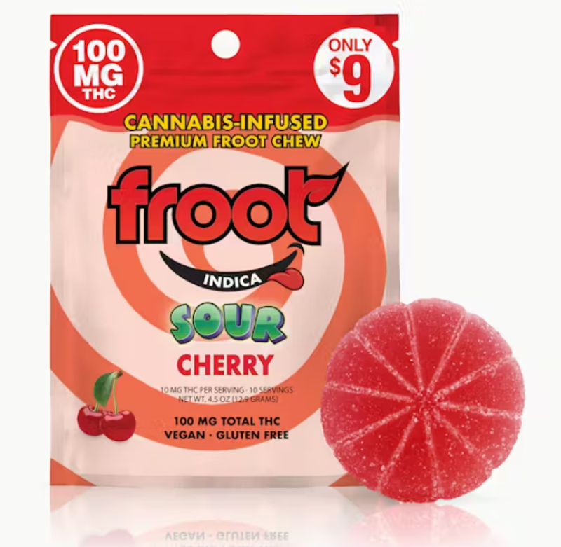 The best tasting infused gummy ever! Froot Premium froot chews are made from the best plants on Earth! We only use the highest quality cannabis oil to infuse into Froot, creating an incredibly tasty consistently dosed Froot chew every time. Daytime, nighttime, or anytime... Enjoy Froot! Vegan, Gluten Free, Dairy Free 100mg total THC - 100 x 1-Piece (Gummy is perforated into 10 easy-to-cut pieces)