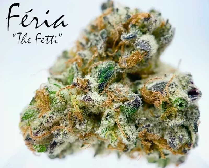 Fresh and best Fria, also know as "The Fetti" Strain. Green Dragon’s renowned Feria The Fetti strain and High Times Cannabis Cup winner for best hybrid is one of the most unique strains in the modern cannabis market. A result of years of genetic testing and breeding, Feria represents the pinnacle of Green Dragon’s cannabis breeding program. Feria is known for its impeccable strength, long-lasting high, and distinctive scent and flavor. Visually Feria is a beautiful strain with bright light green leaves loaded with so much trichome content that the strain ends up gleaming with a shiny silver and white hue. Nugs of Feria are further accented with colors of blue and purple throughout the buds which adds to its overall exotic look. Feria’s smell is an intoxicating one, combining a super candied blue Zkittlez scent with the dank odor of raw THC hash. This delightful combination of candied fruit and fuel-like THC is a quality that words can only grasp at and must be experienced directly to truly appreciate. The same properties found in Feria’s smell profile transfer seamlessly to its taste, giving Feria a delectable candied yet hashy flavor. When smoked or vaporized Feria bestows an extremely strong and long lasting high, making Feria an essential go-to strain for seasoned smokers with high tolerances. With its remarkable genetics and intoxicating smell and high, it’s no surprise that Feria is a favorite amongst cannabis consumers and one of the most in demand strains in Green Dragon’s genetic lineup. Genetics: Cush Kake x Animal Face