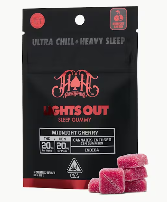 Using a powerful combination of THC and CBN delivered by the velvety flavor of black cherries, Lights Out Midnight Cherry is the undisputed Heavyweight Champion of night-time confections, pummeling you with right hooks of heavy relaxation and always winning with a stunning KO. Gluten-Free | Dairy Free | Nut Free STRAIN TYPE / PHENOTYPE: Indica This statement has not been evaluated by the Food and Drug Administration. This product is not intended to diagnose, treat, cure, or prevent any disease. Flavors Blueberry Berry Mango Effects & flavors are reported by users on our site. This is for informational purposes only and not intended as medical advice. Please consult your physician before changing any medical treatment.