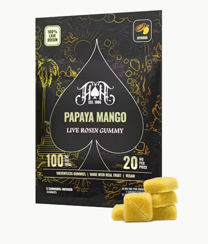 "Our Papaya Mango gummies offer a delightful combination of tropical flavors in a cannabis-infused treat. Bringing. Together the luscious sweetness of papaya and the succulent tanginess of mango. As a hybrid edible, it combines the best of both Indica and sativa effects, providing a balanced experience that relaxes the body while stimulating the mind. Each bite-sized piece delivers a tropical burst of fruity flavors, accompanied by a gentle, harmonious high. Enjoy the mouthwatering taste of this blissful, rosin-infused, indulgence. PHENOTYPE: Hybrid EFFECT PROFILE: Relaxed, Euphoric, Uplifting This statement has not been evaluated by the Food and Drug Administration. This product is not intended to diagnose, treat, cure, or prevent any disease."