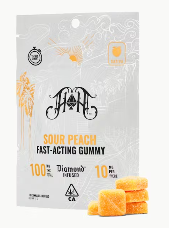 Infused with 99%+ pure THCA diamonds, our fast-acting formulation offers a clean high that hits quickly. Each gummy is made with real fruit concentrate and is bursting with a bold, sour flavor to kick your taste buds into gear. Fast-acting technology encourages onset in up to 15 minutes. The juicy peach flavor is perfectly paired with a stimulated, creative high. 10MG THC / Piece (1 Serving / Piece) Gluten Free | Dairy Free | Nut Free STRAIN TYPE / PHENOTYPE: Sativa This statement has not been evaluated by the Food and Drug Administration. This product is not intended to diagnose, treat, cure, or prevent any disease.