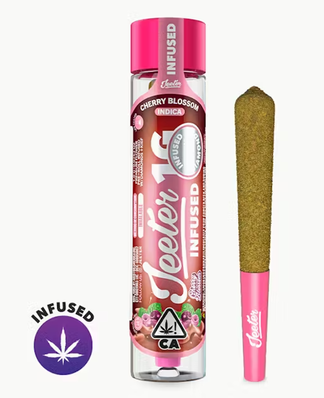 Cherry Blossom Jeeter Infused | 1G Joint | Indica | Infused with Liquid Diamonds and Kief | THC 43.16% At the core of Jeeter is our Culture .. a culture of love, passion and innovation. We value relationships and the culture of our company can been seen in everything we do from our products, to our brands, to our facilities, to our love for our customers and each other.