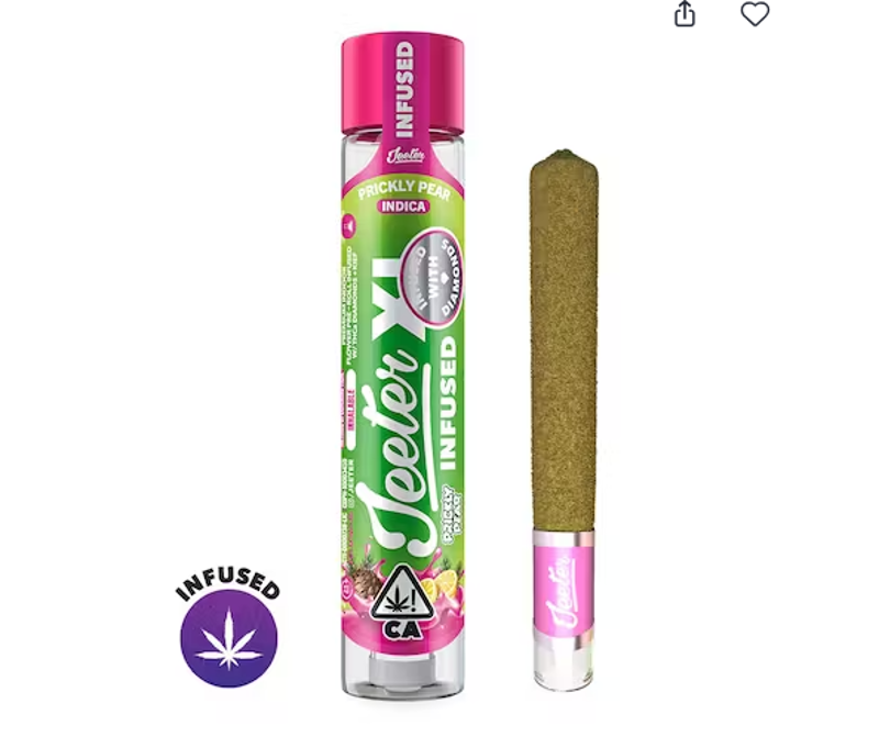 Prickly Pear XL Infused | 2G Joint | Indica | 43.06% THC Indoor Grown Infused with THCa Diamonds and Kief With strong notes of pine, pepper and a hint of lemon, these camo green buds are chunky like the cactus it’s named after. A smooth smoke, that tastes similar to the way it smells gives way to a creative, exploratory high. Perfect for going out or for staying in.
