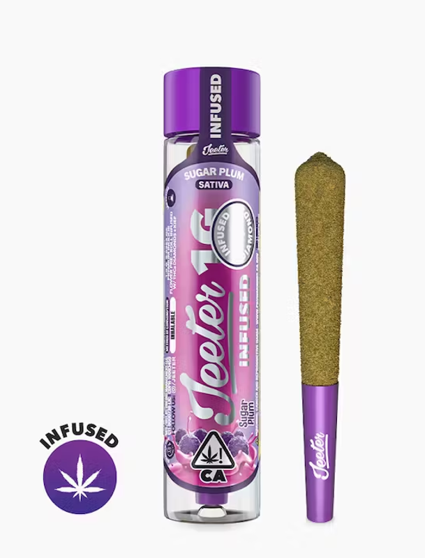 Sugar Plum Jeeter Infused | 1G Joint | Sativa | 44.48% THC Indoor Grown Infused Sugar Plum is an award-winning sativa bred by crossing Berkeley Blues and Hawaiian Haze Plum. With a tropical and earthy flavor, Sugar Plum produces hard-hitting and long-lasting cerebral effects. Flavors Earthy Sweet Berry