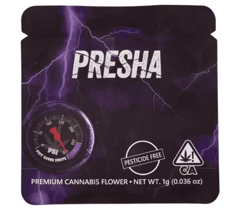 Bred for those who thrive under intensity, PRESHA OG hits with deep, grounding waves that melt tension and quiet the noise. This powerhouse Indica cross of Han Solo x GMO brings rich, earthy gas layered with pine and spice—classic OG character with an amplified edge.Expect a slow-building body buzz that expands with every inhale, easing you into a calm that feels both heavy and alive. PRESHA OG is your storm shelter after a long day—potent, pure, and pressure-tested for maximum chill. Feel the pressure. Ride the storm. Pesticide-free. Greenhouse-grown. Uncompromisingly clean.