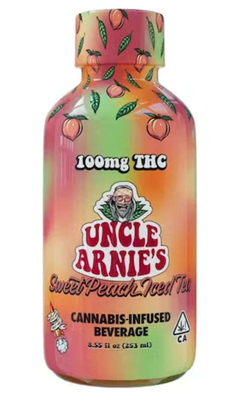 Packed with 100mg of THC in every 8oz bottle, Uncle Arnies is a trip worth taking man.... The #1 selling 100mg Cannabis-Infused Beverage in CA, there's good reason it's flying off the shelves. Uncle Arnies Sweet Peach Iced tea is Sweet, refreshing and taste like a peach pie! So take it dose by dose or #crackitandsmackit and enjoy every sip. All our products are Nano infused for a 20-40 minute onset time.